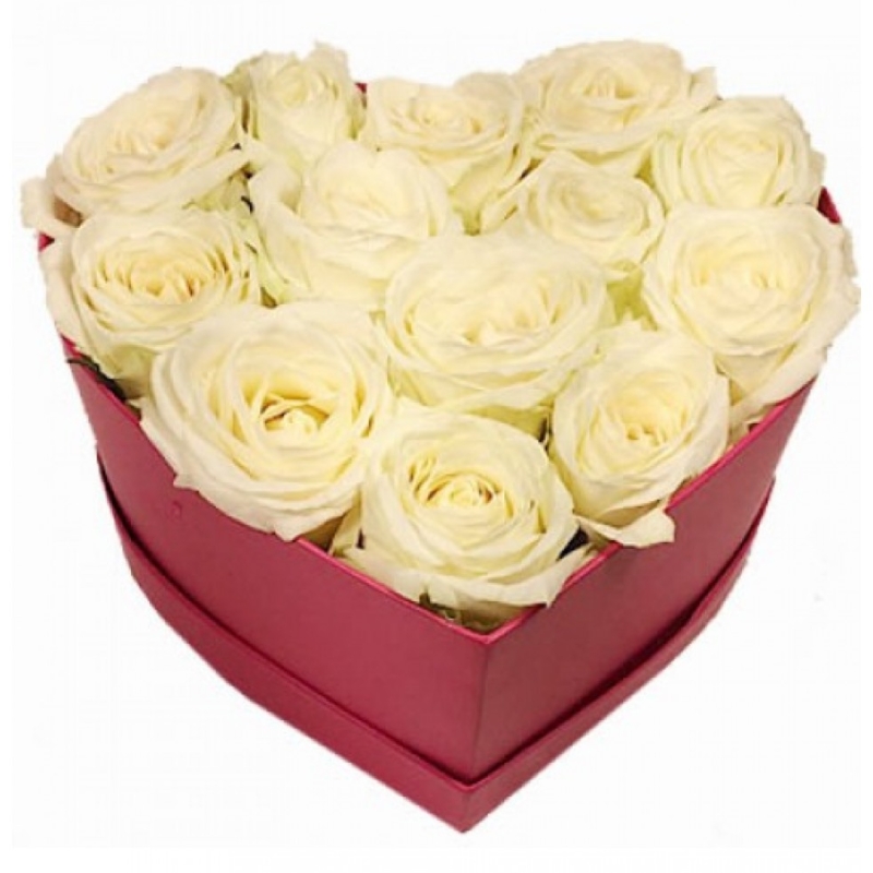 Сердце из 13 белых роз в коробке